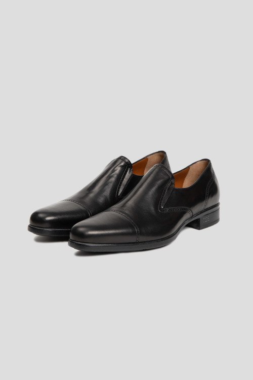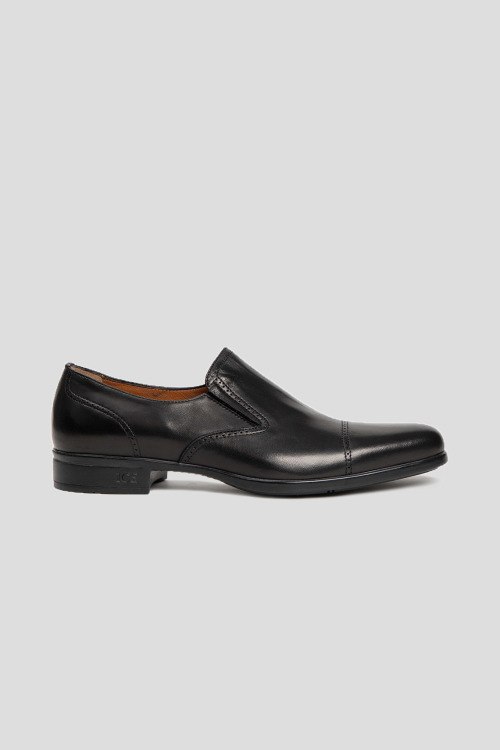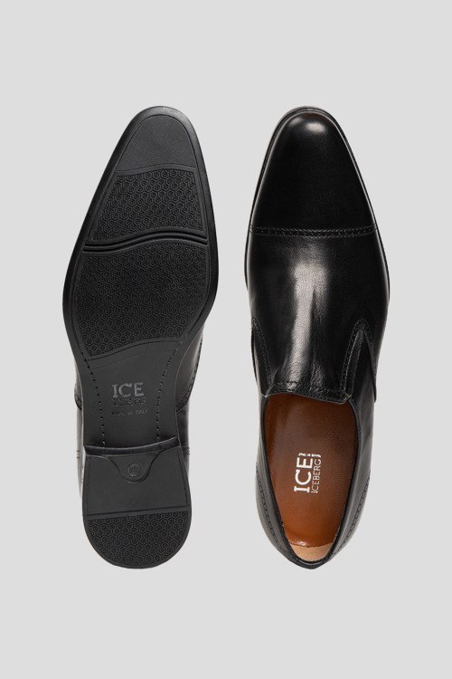 Детали: Мужские черные туфли из натуральной кожи от Iceberg (Айсберг). Миндалевидный носок, кожаная стелька с логотипом бренда, блочный каблук, эластичные вставки по бокам