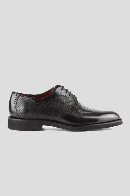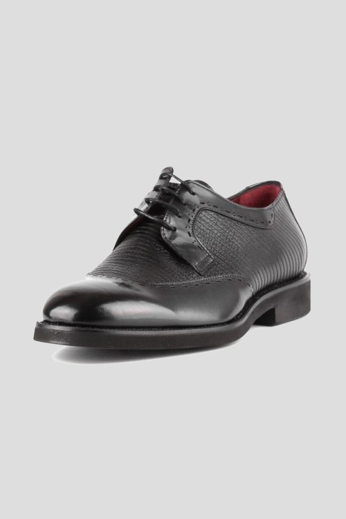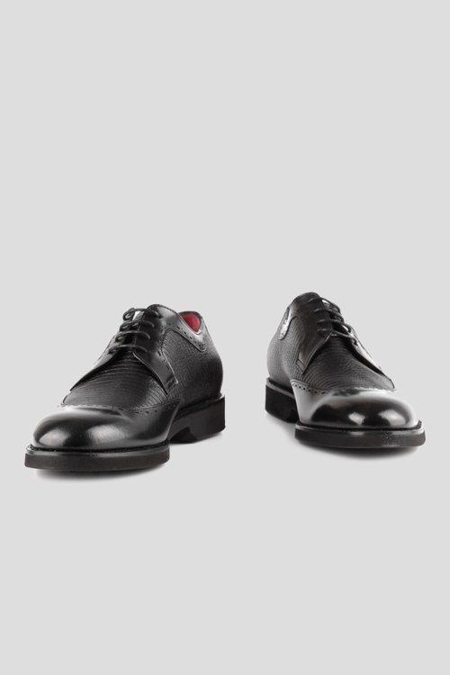 Детали: Мужские черные туфли из натуральной кожи от Le Berdes (Ле Бердес). Миндалевидный носок, спереди шнуровка, по бокам декорированы теснением, небольшой каблук, стелька из натуральной кожи