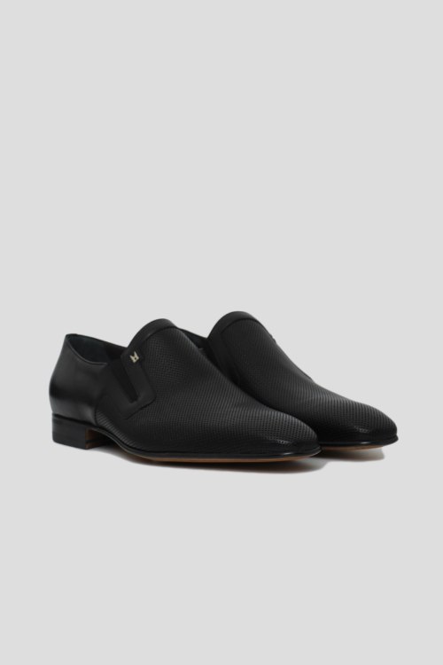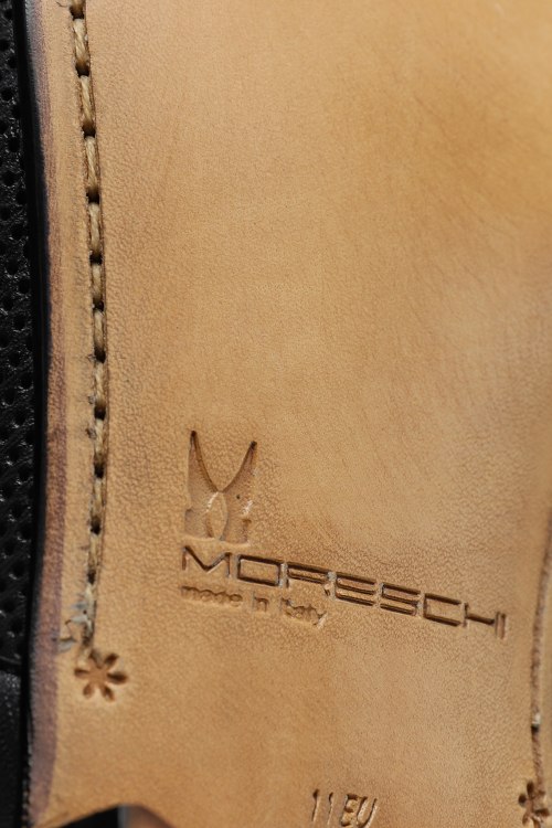 Детали: Мужские черные туфли из натуральной кожи от Moreschi (Морески). Дизайн с перфорацией, металлический логотип, миндалевидный носок, широкий каблук, плоская подошва