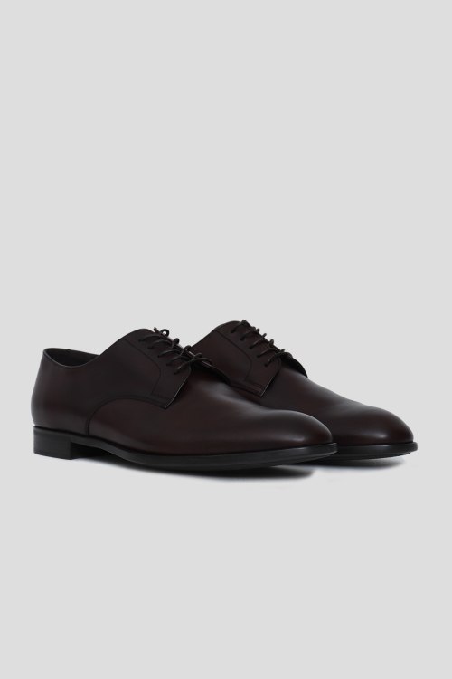 Детали: Мужские коричневые туфли из натуральной кожи от Giorgio Armani (Джорджио Армани). Круглый носок, венский каблук, классическая шнуровка, гладкая кожа