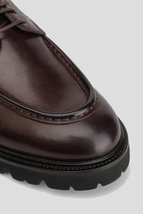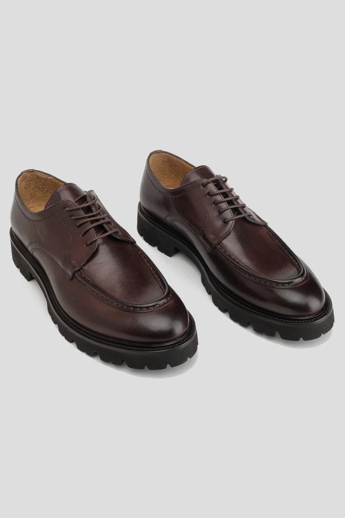 Детали: Мужские темно-коричневые кожаные туфли от Brecos (Брекоз). Модель из гладкой кожи, классическая шнуровка, закругленный носок, тракторная подошва