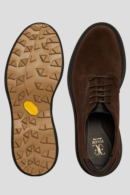 Детали: Мужские темно-коричневые замшевые дерби от Fabi (Фаби). Классическая шнуровка, закругленный носок, кожаная стелька. Высота подошвы: 4 см