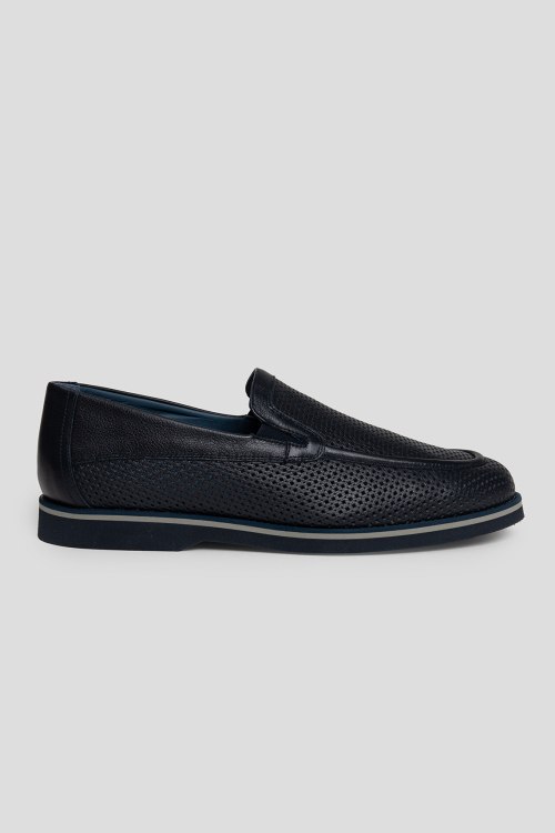 Детали: Мужские темно-синие туфли из натуральной кожи от Luca Guerrini (Лука Гуерини). Закругленный носок, перфорированный дизайн, кожаная стелька с логотипом бренда, резиновая подошва