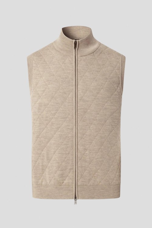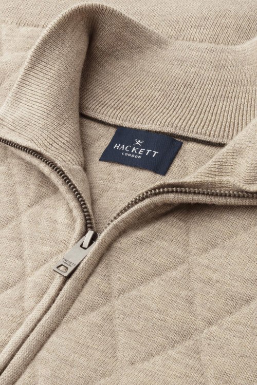 Детали: Мужской бежевый шерстяной жилет от Hackett (Хаккетт). Ромбовидный узор, высокий воротник, застежка-молния, классическая длина. Обхват груди: для размера М - 102 см, обхват талии: для размера М - 102 см, длина изделия по среднему шву спинки от горловины: для размера М - 68 см