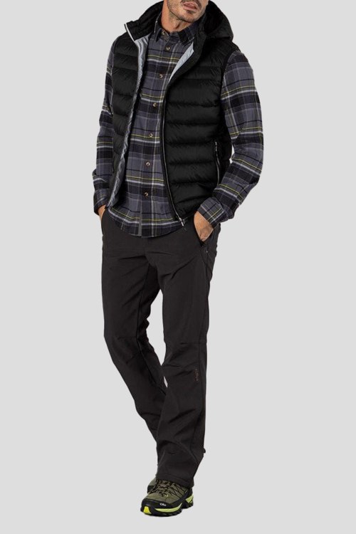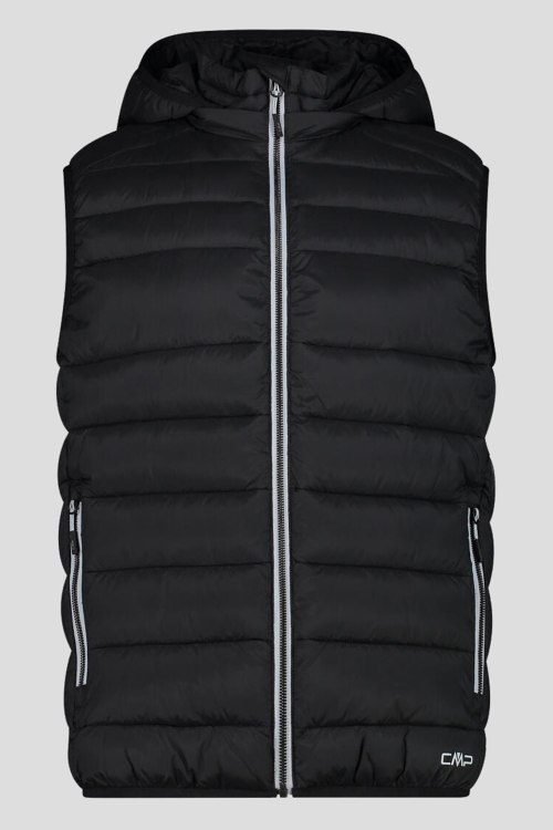 Детали: Мужской черный жилет от CMP (СМП). Стеганый дизайн, съемный капюшон, высокий воротник, боковые карманы на молнии, застежка-молния, принт с логотипом, классическая длина