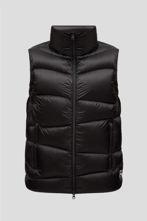 Мужской черный жилет из нейлона от Colmar (Колмар). Стеганый дизайн, высокий воротник-стойка, застежка на молнию, модель утепленная миксом из пуха и пера, прорезные карманы, патч-лого. Измерения: обхват груди: для размера 50 - 110 см, обхват талии: для размера 50 - 110 см, длина изделия по среднему шву спинки от горловины: для размера 50 - 65 см