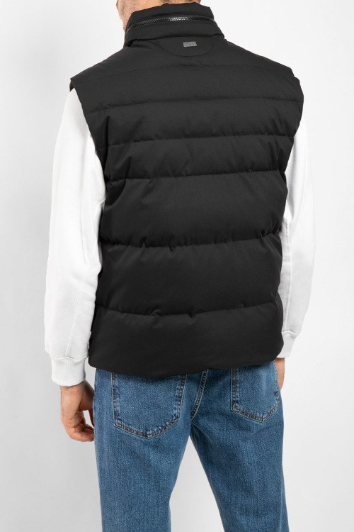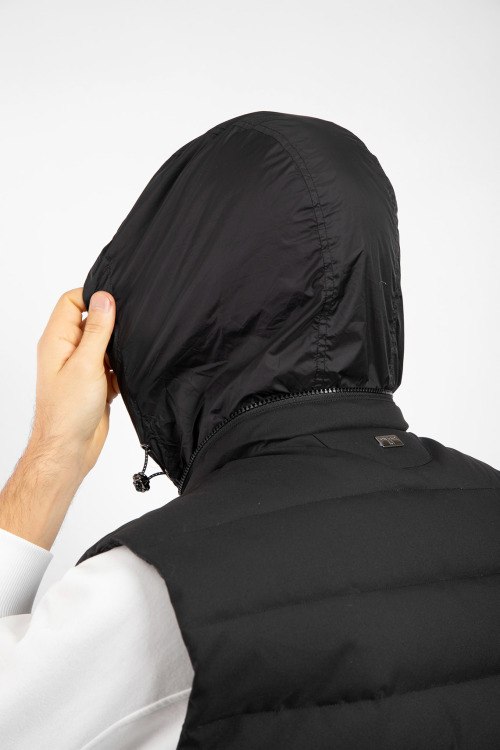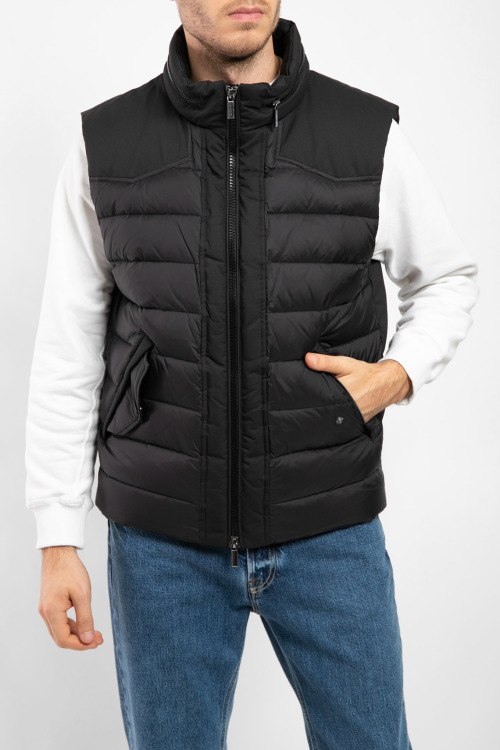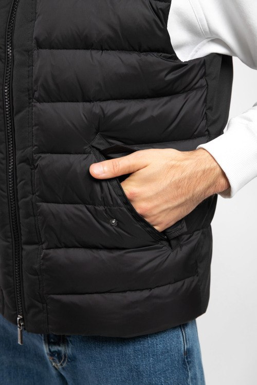 Мужской черный жилет из нейлона от Diego M (Диего М). Стеганый дизайн, потайной капюшон вшитый воротник, застежка на молнию, прорезные карманы на кнопке, внутренний карман на молнии, модель утепленная миксом из пуха и пера. Замеры для размера 50: длина: 68 см, ширина по груди: 60 см, ширина по талии: 58 см, ширина по бёдрам 56, плечи 49 см.