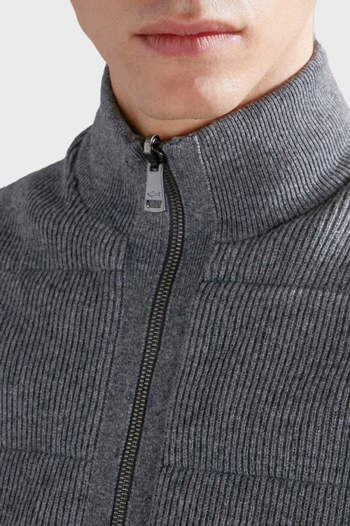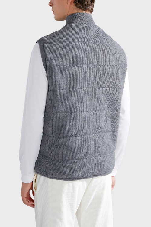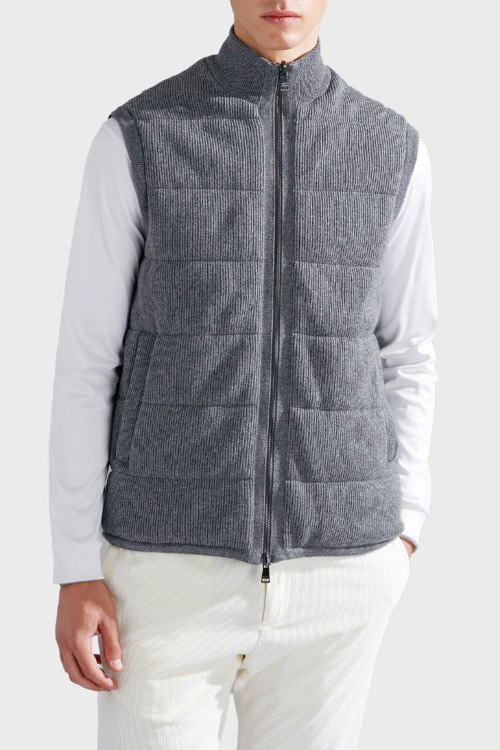 Детали: Мужской серый утепленный жилет из шерсти и кашемира от Paul & Shark (Пол энд Шарк). Стеганый дизайн, высокий воротник, боковые карманы, застежка-молния, классическая длина