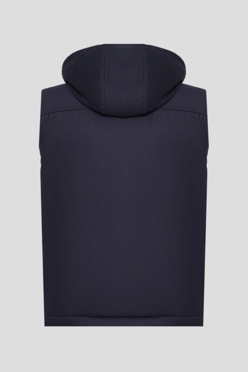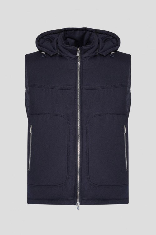 Детали: Мужской темно-синий шерстяной жилет от Tombolini (Томболини). Съемный капюшон, высокий воротник, боковые карманы на молнии, застежка-молния, классическая длина. Обхват груди: для размера 54 - 102 см, обхват талии: для размера 54 - 102 см, длина изделия по среднему шву спинки от горловины: для размера 54 - 68 см