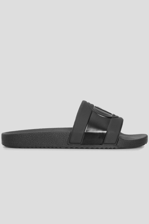 Детали: Мужские черные слайдеры Belize из резины от Bogner (Богнер). Закругленный носок, широкий ремешок с логотипом бренда, анатомическая стелька