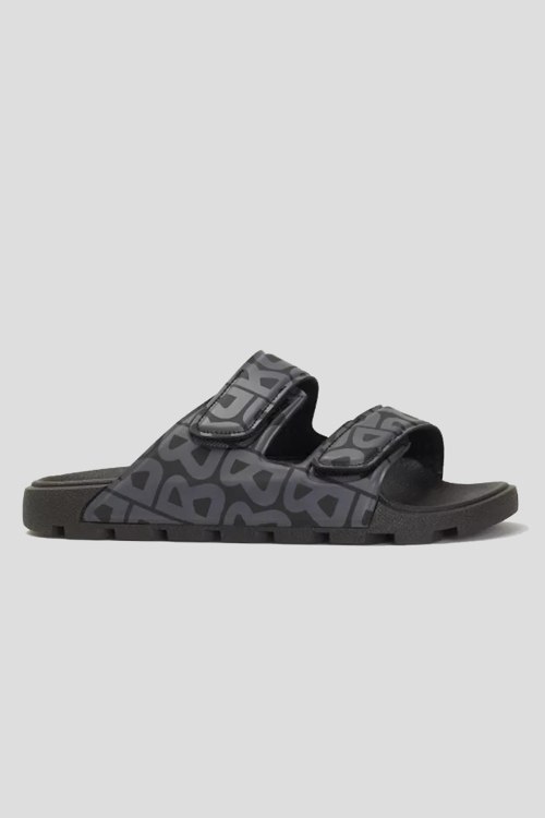 Детали: Мужские черные резиновые слайдеры от Bogner (Богнер). Принт с монограммой, ремешки на липучках, закругленный носок, анатомическая стелька