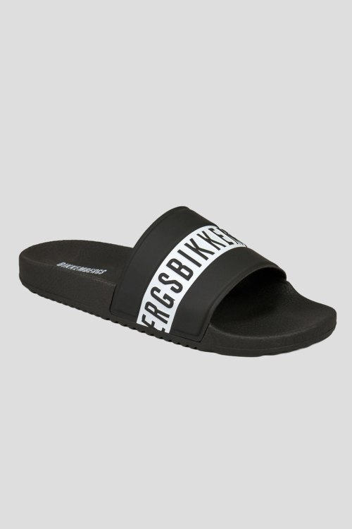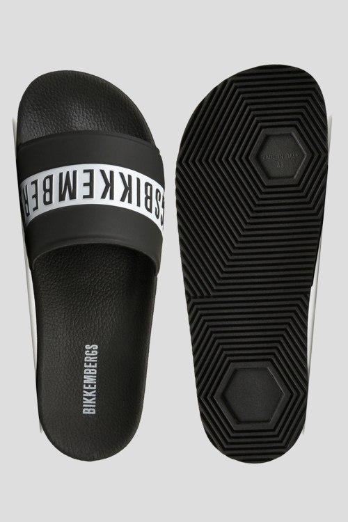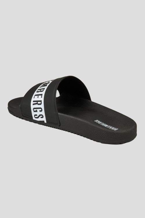 Детали: Мужские черные слайдеры от Bikkembergs (Биккембергс). Широкий ремешок с логотипом, закругленный носок, анатомическая стелька