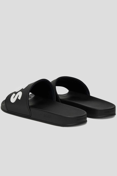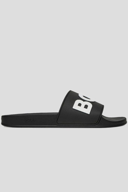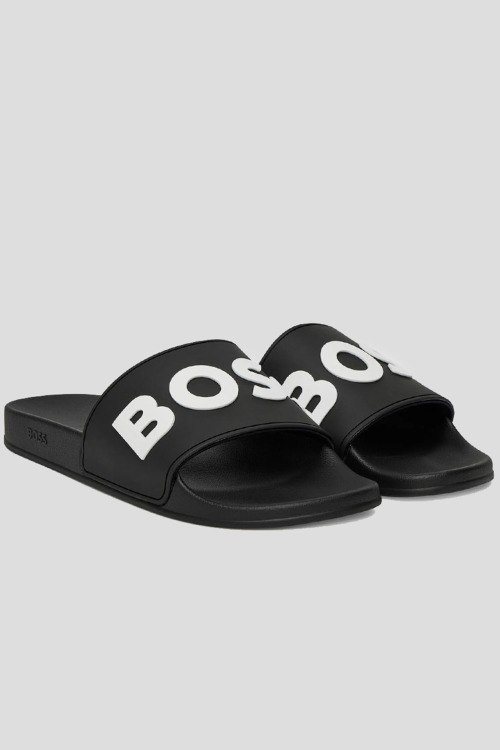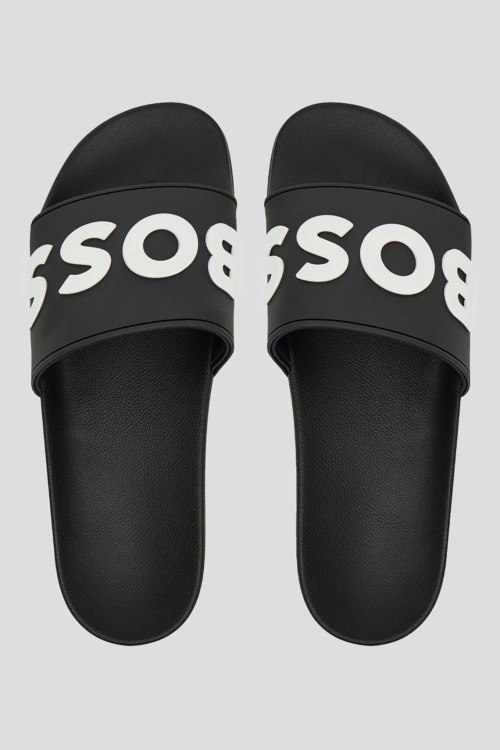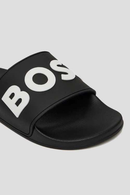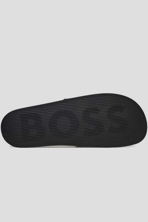Детали: Мужские черные слайдеры Kirk от Hugo Boss (Хуго Босс). Широкий ремешок с логотипом, закругленный носок, анатомическая стелька