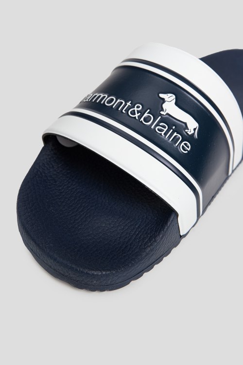 Детали: Мужские темно-синие слайдеры из резины от Harmont & Blaine (Хармонт энд Блейн). Закругленный носок, анатомическая стелька, широкий ремешок, логотип бренда с логотипом бренда