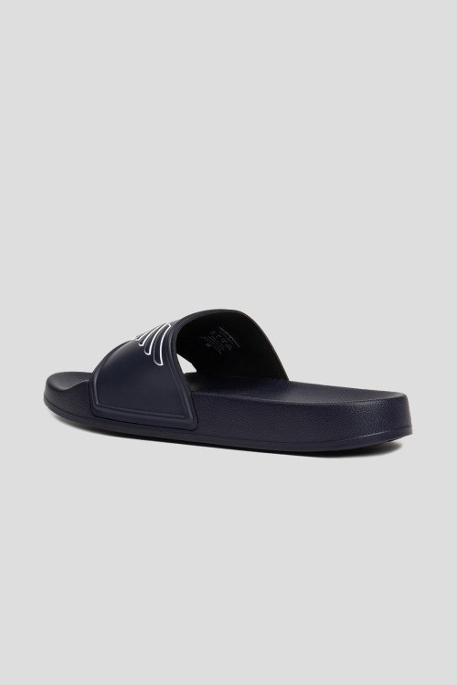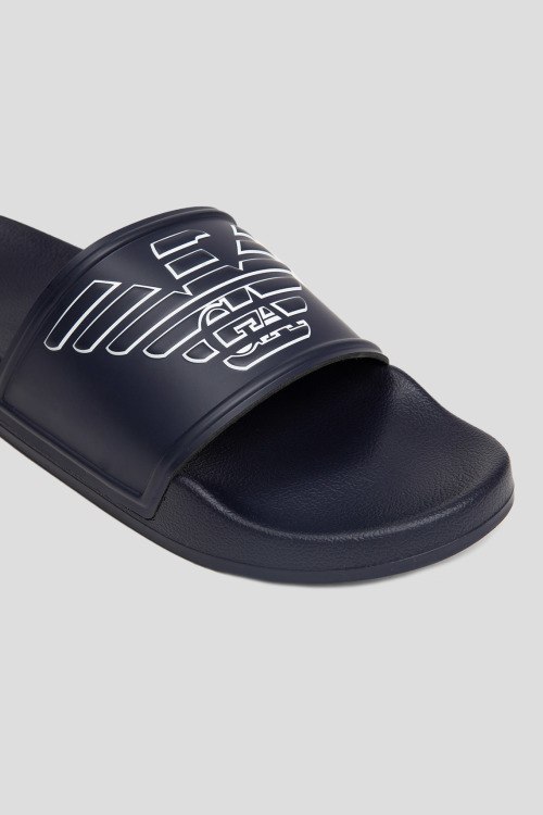 Детали: Мужские темно-синие слайдеры из резины от EA7 Emporio Armani (ЕА7 Эмпорио Армани). Закругленный носок, широкий ремешок с тиснением логотипа бренда,