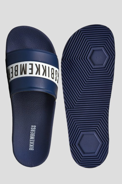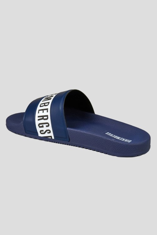 Детали: Мужские темно-синие слайдеры от Bikkembergs (Биккембергс). Широкий ремешок с логотипом, закругленный носок, анатомическая стелька