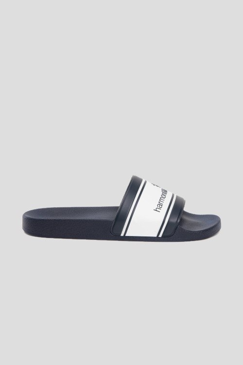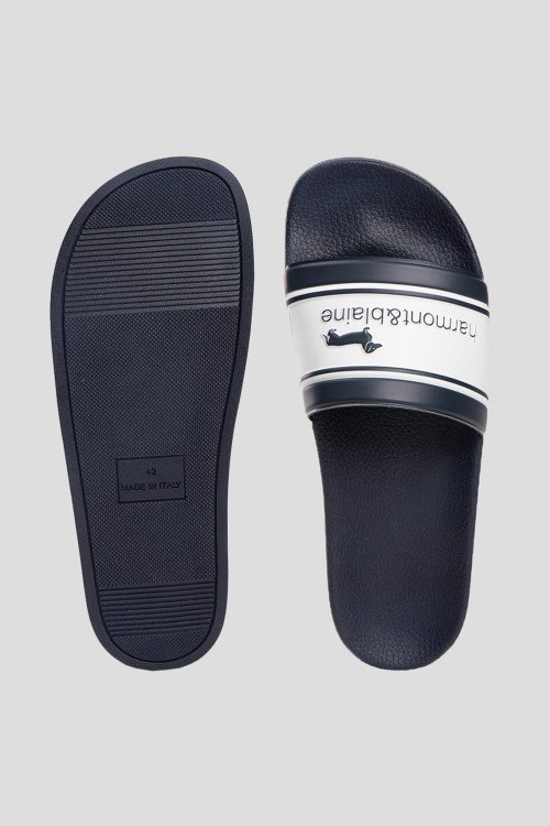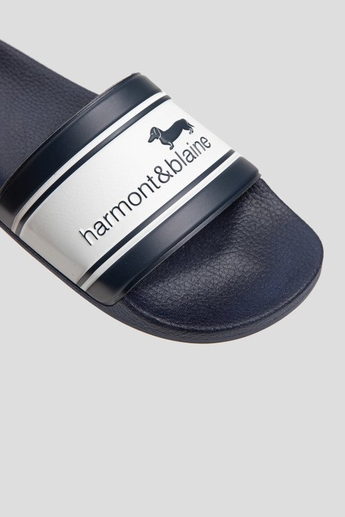 Детали: Мужские темно-синие слайдеры от Harmont & Blaine (Хармонт энд Блейн). Широкий ремешок с логотипом, закругленный носок, анатомическая стелька