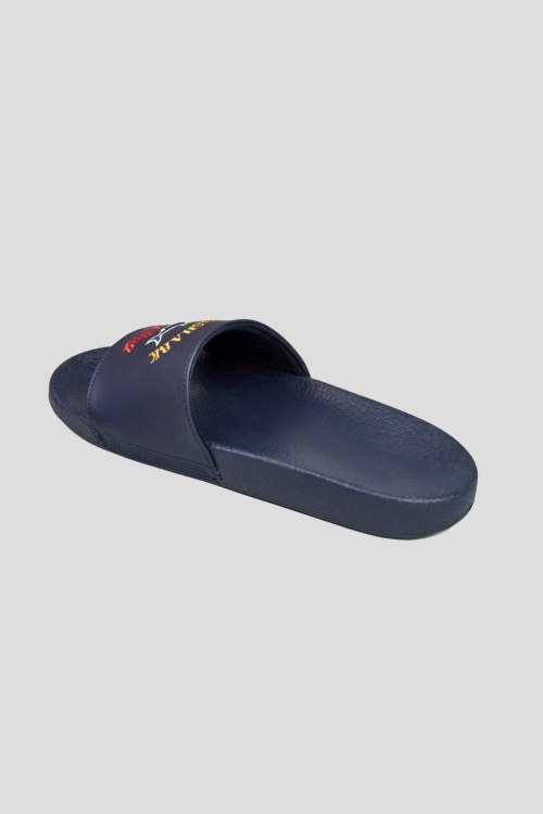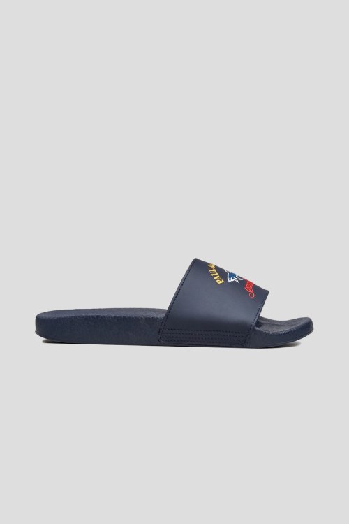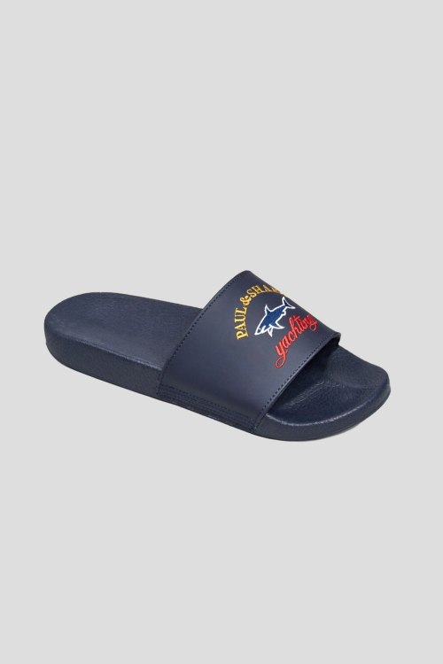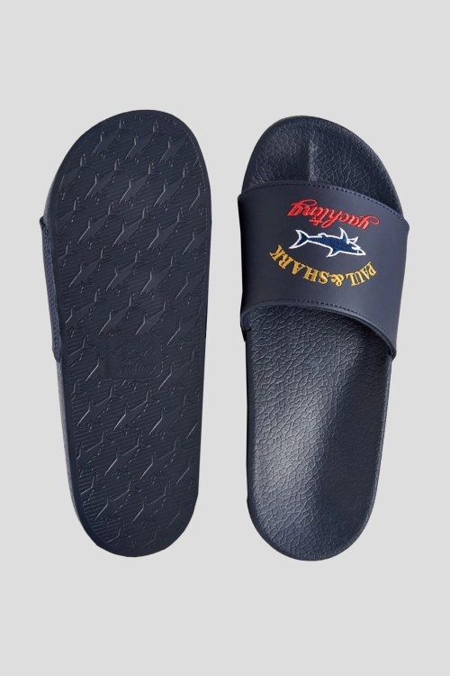 Детали: Мужские темно-синие резиновые слайдеры от Paul & Shark (Пол энд Шарк). Широкий ремешок с логотипом, закругленный носок, анатомическая стелька