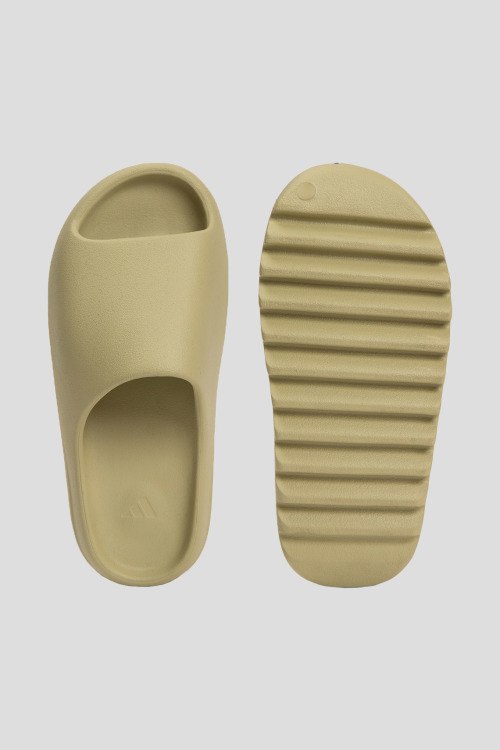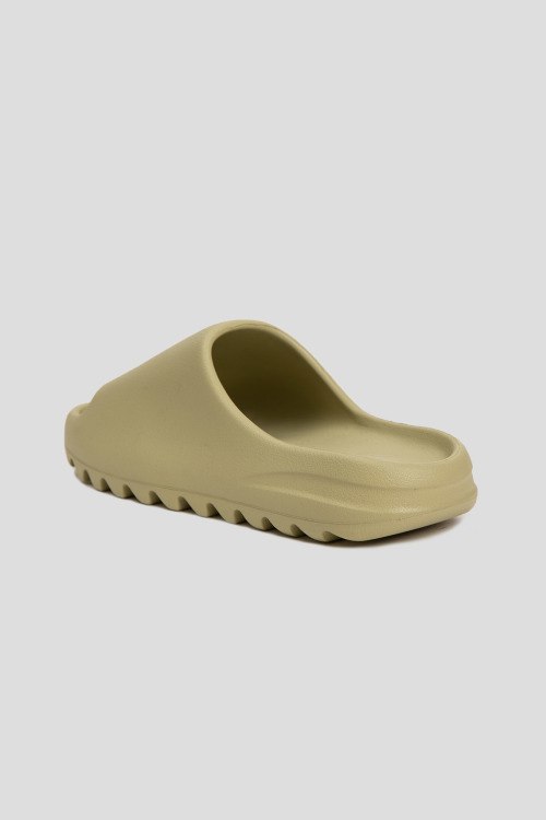 Детали: Мужские оливковые слайдеры Slide Resin от Adidas Yeezy (Адидас Изи). Модель из прочного материала, закругленный носок, стелька с логотипом, ребристая подошва