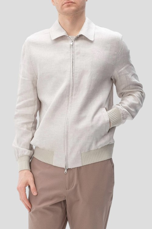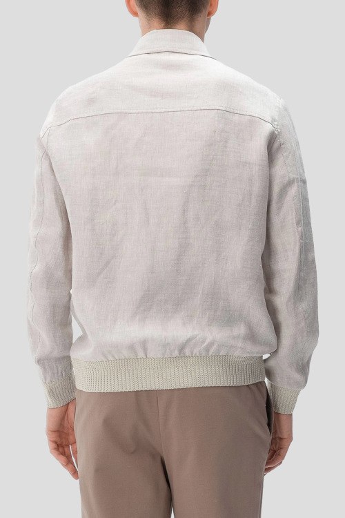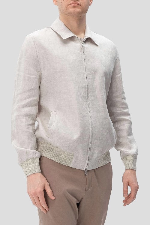 Детали: Мужская бежевая льняная ветровка от Paul Taylor (Пол Тейлор). Классическая длина, отложной воротник, застежка на молнию, трикотажная резинка на манжетах и по низу изделия, прорезные карманы