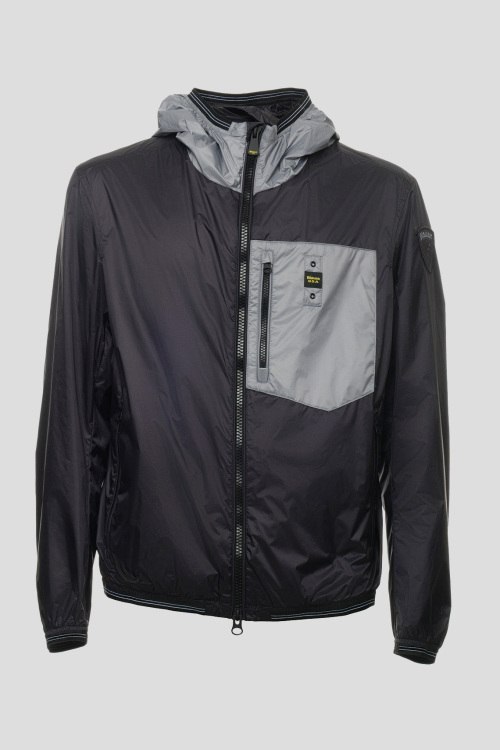 Детали: Мужская черная ветровка от Blauer (Блауэр). Вшитый капюшон, нашивка с логотипом на рукаве, три кармана на молнии, застежка-молния, манжеты и нижний край на резинке, классическая длина