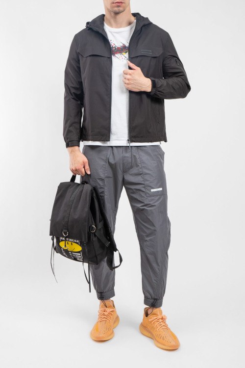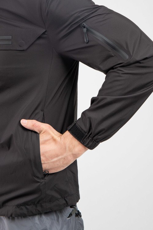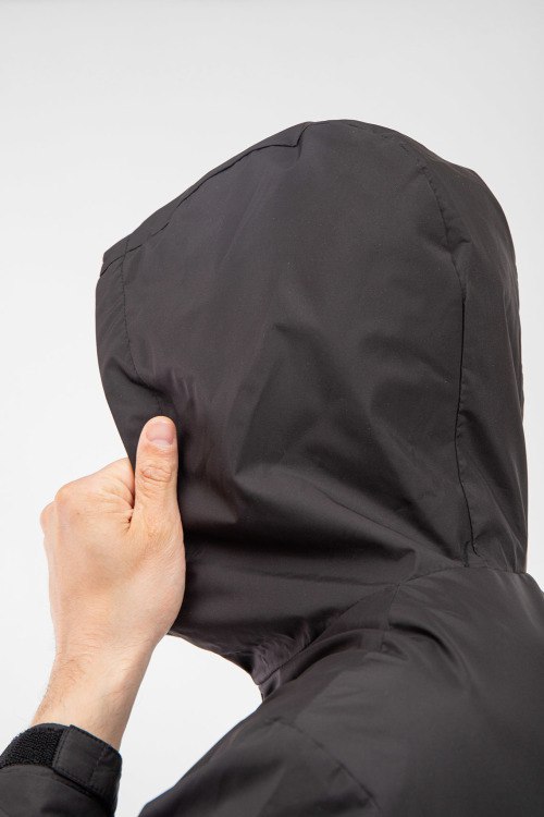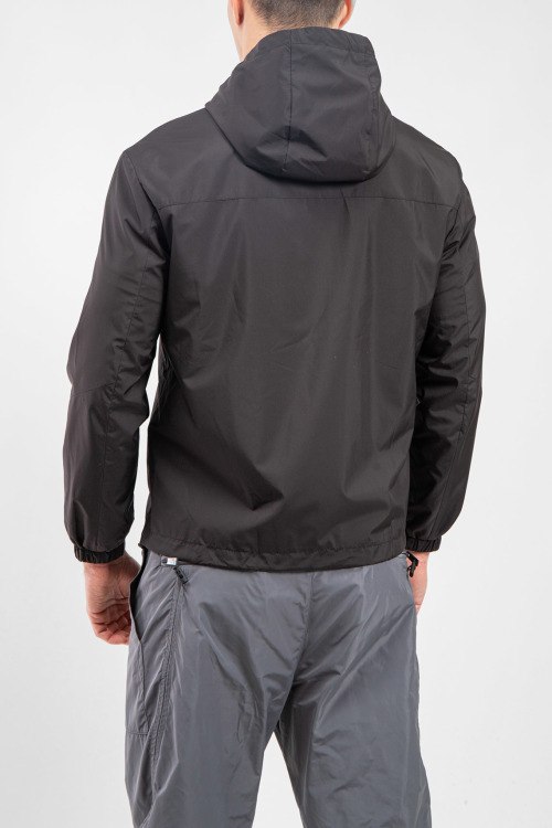 Мужская черная ветровка от Ermenegildo Zegna (Эрменеджильдо Зенья). Вшитый капюшон, карман на рукаве, боковые карманы, застежка-молния, регулируемые манжеты, классическая длина.