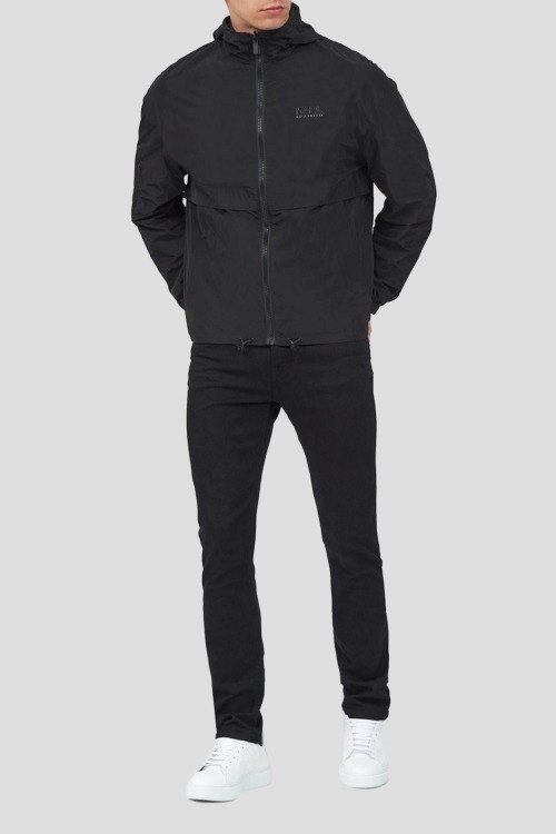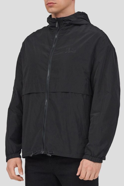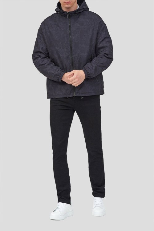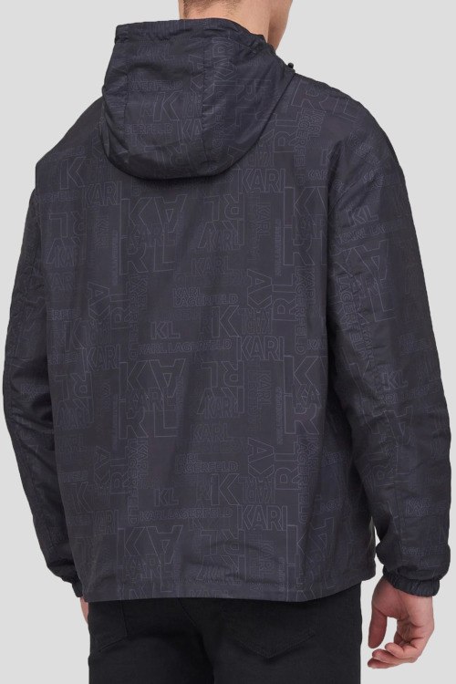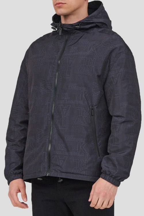 Детали: Мужская черная двухсторонняя ветровка от Karl Lagerfeld (Карл Лагерфельд). Вшитый капюшон, одна из сторон с принтом логотипа, боковые карманы на молнии, застежка-молния, манжеты на резинке, классическая длина