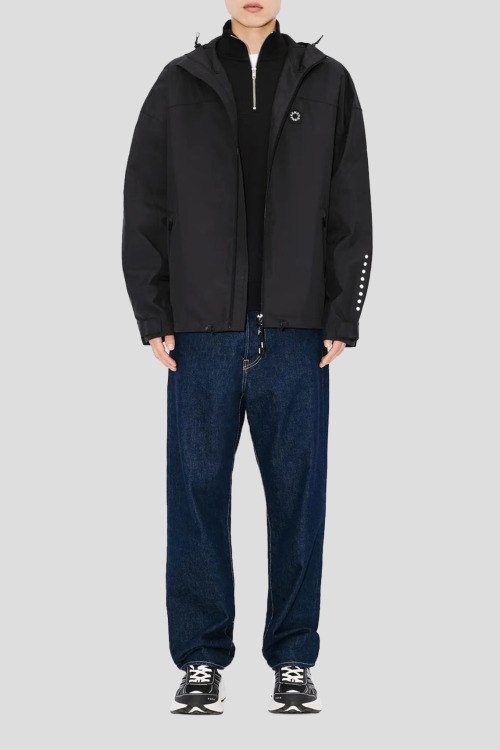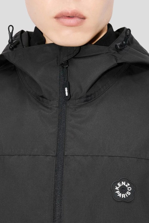 Детали: Мужская черная ветровка Boke Flower 2.0 из полиэстера от Kenzo (Кензо). Классическая длина, застежка на молнию, вшитый капюшон с утяжкой, длинные рукава, утяжка по низу изделия, патч-лого, модель без подкладки