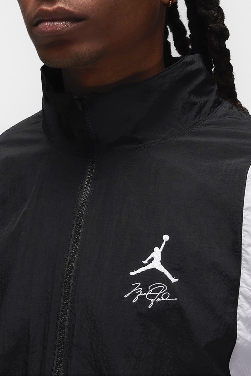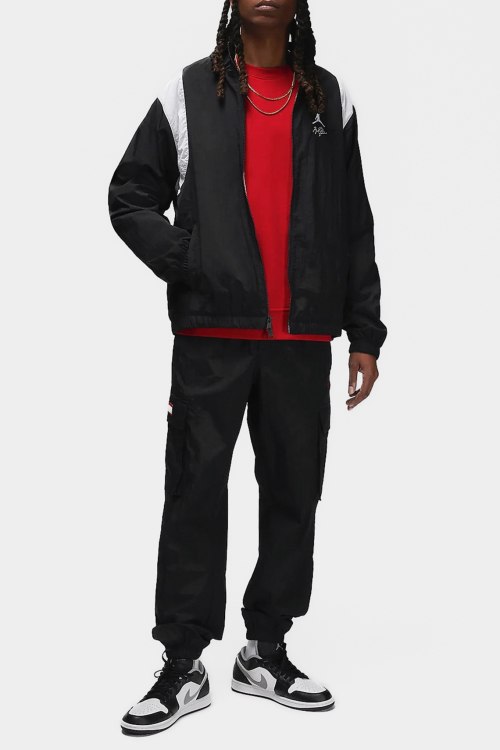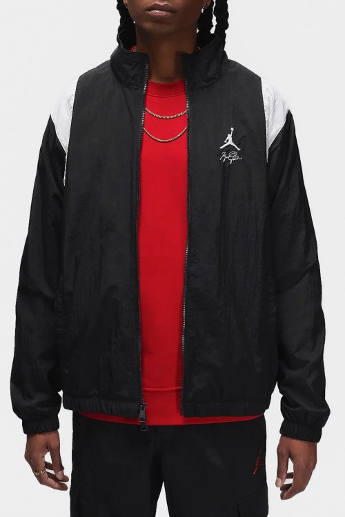 Детали: Мужская черная нейлоновая ветровка от Jordan (Джордан). Логотип на груди, высокий воротник, застежка-молния, классическая длина, манжеты и нижний край на резинке