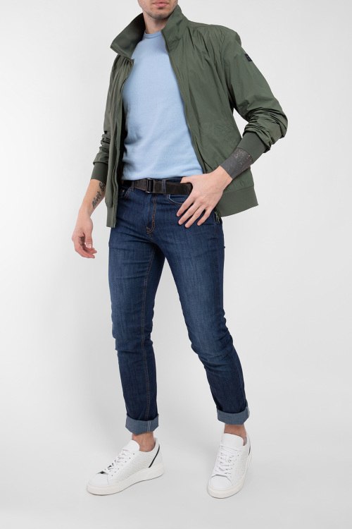 Мужская ветровка цвета хаки из полиамида от Armata di Mare (Армата ди Маре). Классическая длина, высокий воротник-стойка, застежка на молнию, длинные рукава, трикотажная резинка на манжетах и по низу изделия, боковые карманы, патч-лого.