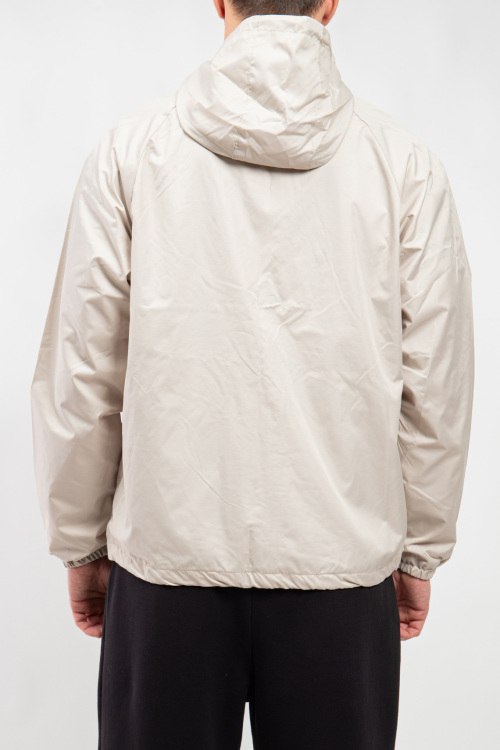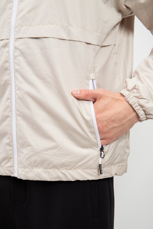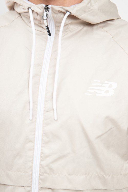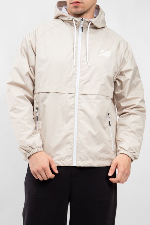 Детали: Мужская ветровка молочного оттенка от New Balance (Нью Беланс). Вшитый капюшон, логотип на груди, боковые карманы на молнии, застежка-молния, манжеты на резинке, нижний край на затяжке, классическая длина