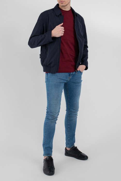 Мужская темно-синяя ветровка от Salvatore Ferragamo (Сальваторе Ферагамо). Классическая длина, застежка на молнию, отложной воротник, застежка на молнию, боковые карманы на молнии, один внутренний карман, трикотажная резинка на манжетах и по низу изделия.