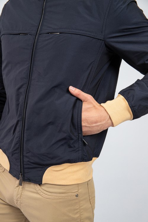 Детали: Мужская темно-синяя ветровка из полиэстера от Husky (Хаски). Высокий воротник, боковые карманы, застежка-молния, классическая длина, трикотажные манжеты и нижний край