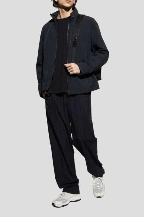 Детали: Мужская темно-синяя ветровка от Paul & Shark (Пол энд Шарк). Воротник-стойка со скрытым капюшоном, три кармана на молнии, застежка-молния, классическая длина