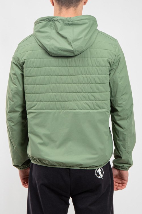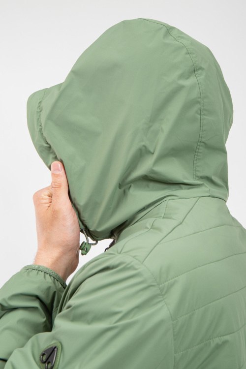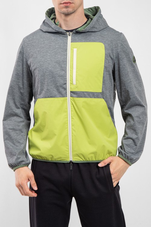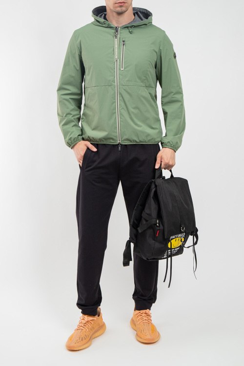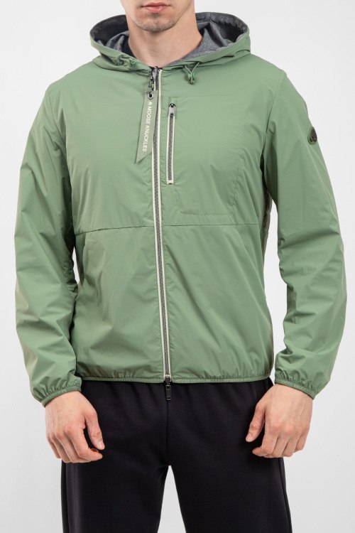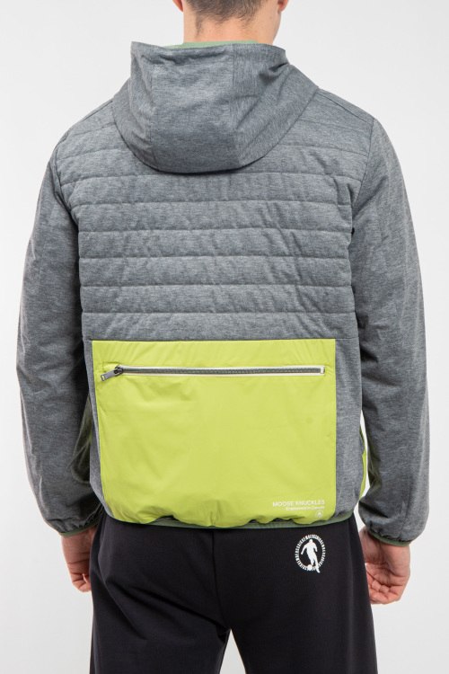 Детали: Мужская ветровка из нейлона и полиэстера от Moose Knuckles (Мус Наклс). Двухсторонняя модель, вшитый капюшон, застежка на молнию, одна сторона зеленого цвета с накладными карманами, патч-лого ,вшитый капюшон, другая сторона серая с желтыми вставками, стеганая спинка. Размер вещи на фото: M