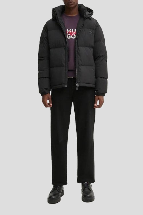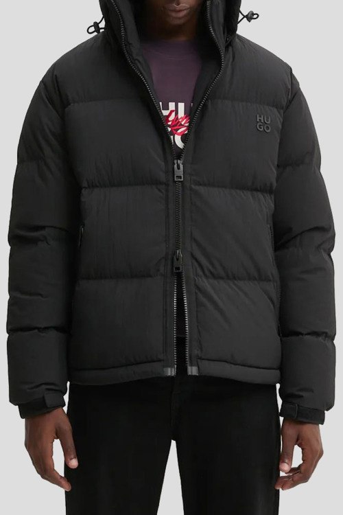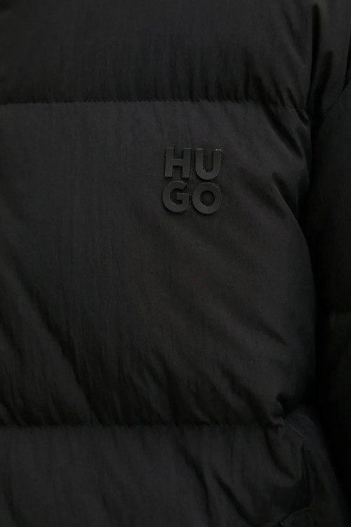 Детали: Мужская черная куртка Bironto из полиамида от Hugo by Hugo Boss (Хуго бай Хуго Босс). Стеганый дизайн, высокий воротник-стойка, съемный капюшон, застежка на молнию, фактурный логотип бренда на груди, утепленная модель миксом из пуха и пера