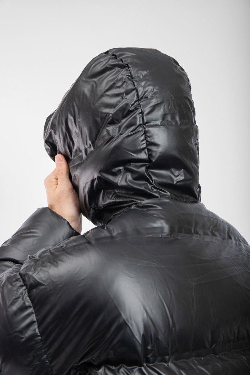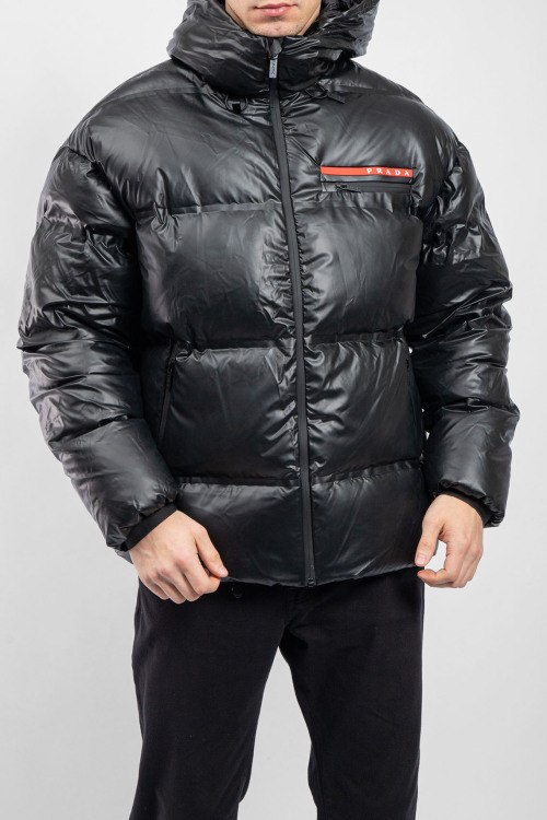 Детали: Мужская черная куртка на пуху с капюшоном Re-Nylon от Prada (Прада). Стеганый дизайн, вшитый капюшон, нашивка с логотипом на груди, три внешних кармана на молнии, внутренний карман на молнии, застежка-молния, классическая длина, наполнитель из микса пуха и пера. Модель маломерит на 1 размер