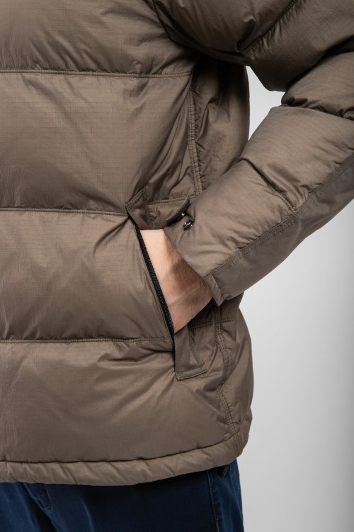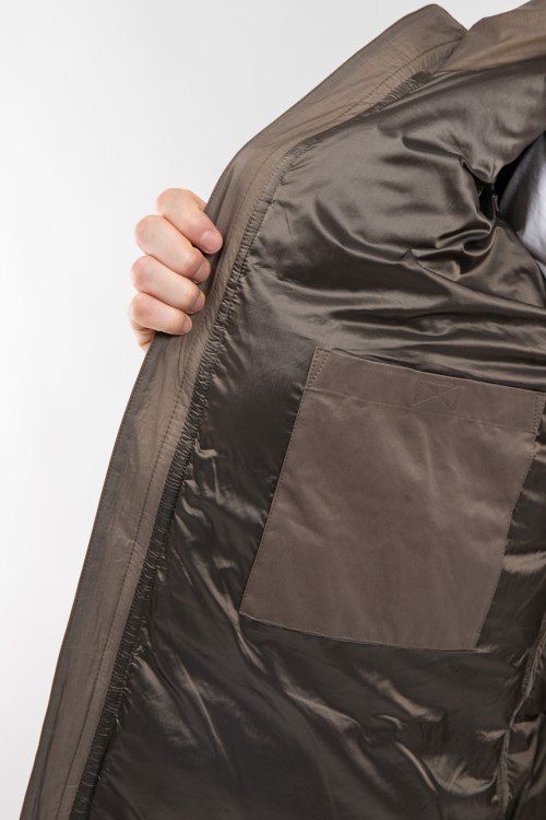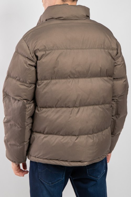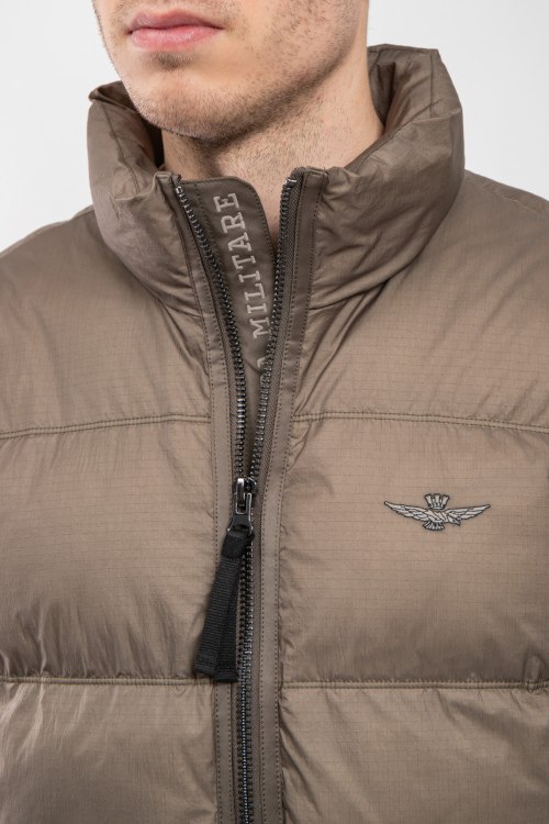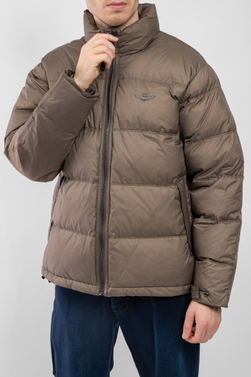Мужская коричневая куртка из нейлона от Aeronautica Militare (Аэронавтика Милитари). Стеганый дизайн, высокий воротник-стойка, застежка на молнию, модель утепленная синтепоном, прорезные карманы на молнии, вышитый лого на груди.