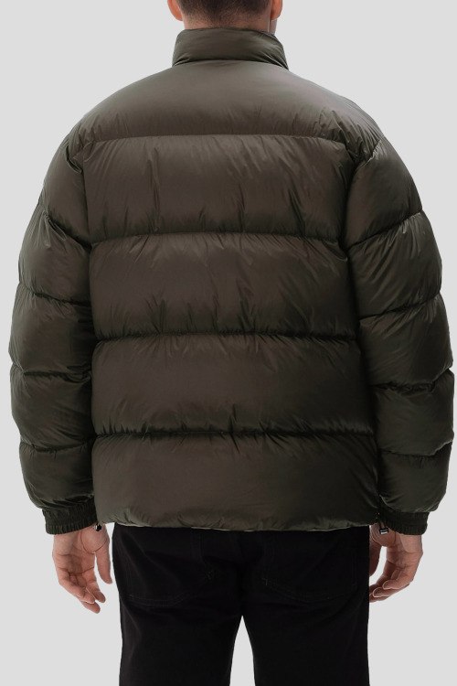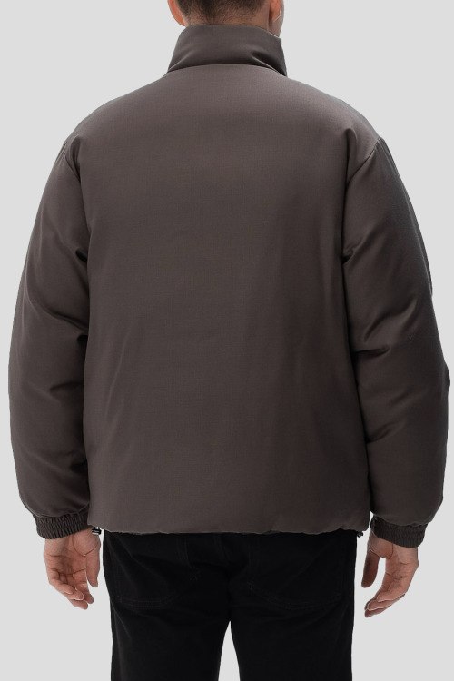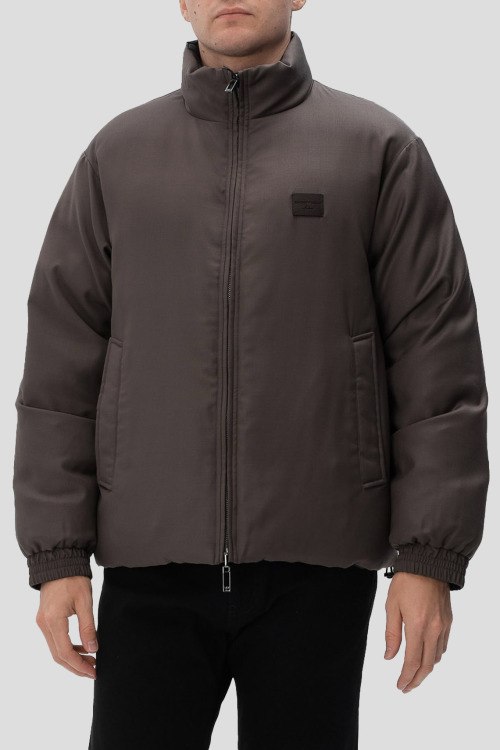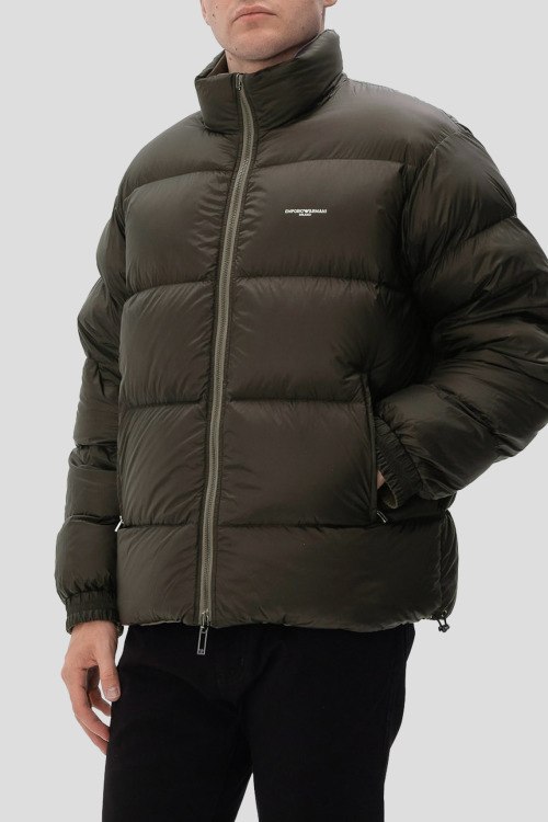 Детали: Мужская двухсторонняя куртка на пуху от Emporio Armani (Эмпорио Армани). Коричневая гладкая сторона, стеганая сторона цвета хаки. Логотип на груди, высокий воротник, боковые карманы, застежка-молния, манжеты на резинке, классическая длина, наполнитель из микса пуха и пера