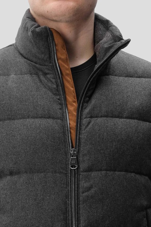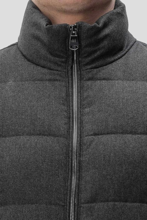 Детали: Мужская серая кашемировая куртка на пуху Leonard от Hetrego (Хетрего). Стеганый дизайн, высокий воротник, боковые карманы, застежка-молния, классическая длина, наполнитель из микса пуха и пера