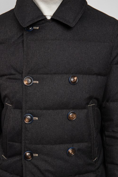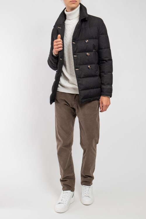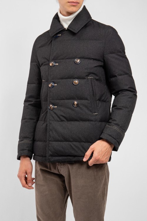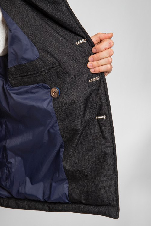 Мужская темно-серая куртка на пуху от Samas (Самас). Двубортный фасон, отложной воротник, боковые карманы, один внутренний карман, застежка на пуговицы, наполнитель из микса пуха и пера. Параметры модели: рост 188, 91-70-92 см. Замеры для размера 48: длина изделия - 74 см; ширина по груди - 54 см; ширина по талии - 53 см; длина рукава по внутреннему шву - 46 см / от плеча - 66 см.