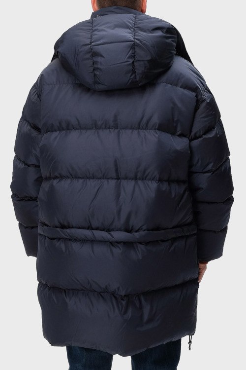 Детали: Мужская темно-синяя куртка из полиамида от Emporio Armani (Эмпорио Армани). Стеганая модель, дизайн трансформер, съемная нижняя часть, застежка на молнию и липучки, высокий воротник-стойка, съемный капюшон, прорезные карманы, внутренний кармана на молнии, вышитый логотип бренда