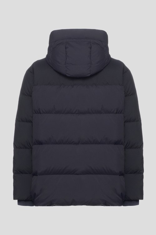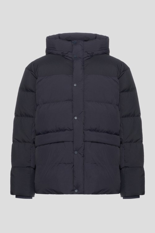Детали: Мужская темно-синяя куртка на пуху от Armani Exchange (Армани Эксчендж). Стеганый дизайн, высокий воротник, вшитый капюшон, передние карманы, застежка на молнию и кнопки, классическая длина, наполнитель из микса пуха и пера