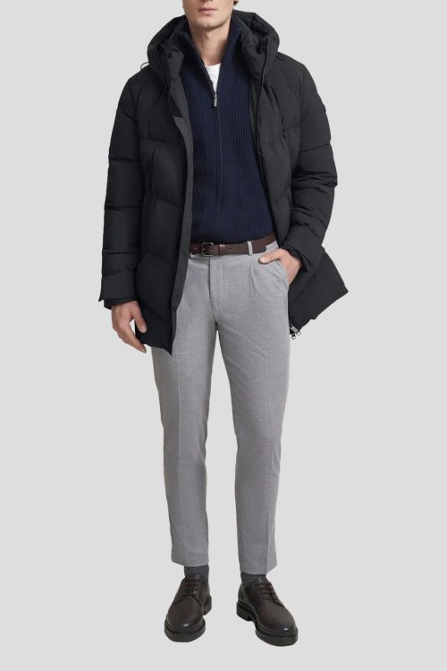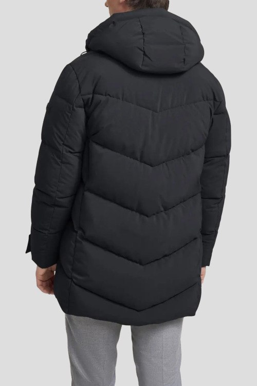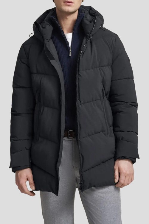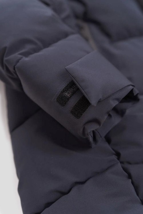 Детали: Мужская темно-синяя куртка из полиэстера от Bugatti (Бугатти). Водонепроницаемая и ветрозащитная модель, стеганый дизайн, высокий воротник-стойка, застежка на молнию, вшитый капюшон, прорезные карманы на молнии, модель утепленная синтепоном, манжеты на липучке