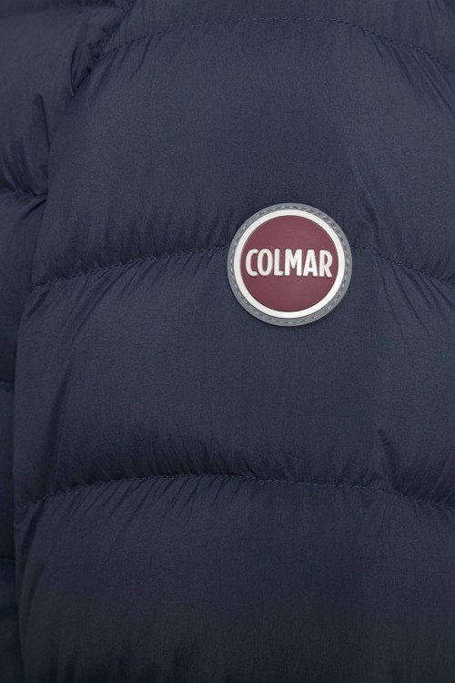 Детали: Мужская темно-синяя куртка на пуху от Colmar (Колмар). Стеганый дизайн, высокий воротник, нашивка с логотипом на рукаве, боковые карманы, застежка на молнию и кнопки, пуховый наполнитель. Длина рукава: длинный, для размера 50 - 65 см, обхват груди: для размера 50 - 114 см, обхват талии: для размера 50 - 114 см, длина изделия по среднему шву спинки от горловины: для размера 50 - 63 см