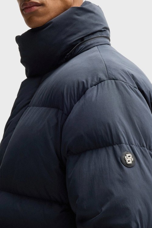Детали: Мужская темно-синяя утепленная куртка C-Celvie от Hugo Boss (Хуго Босс). Стеганый дизайн, съемный капюшон, высокий воротник, нашивка с логотипом на рукаве, передние карманы, застежка на молнию и кнопки, классическая длина