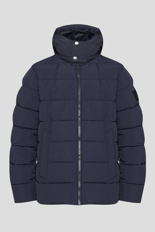 Детали: Мужская темно-синяя куртка от Joop! (Йооп!). Стеганый дизайн, высокий воротник, съемный капюшон, нашивка с логотипом на рукаве, боковые карманы, застежка-молния. Длина рукава: длинный, для размера 50 - 68 см, обхват груди: для размера 50 - 120 см, обхват талии: для размера 50 - 120 см, длина изделия по среднему шву спинки от горловины: для размера 50 - 74 см