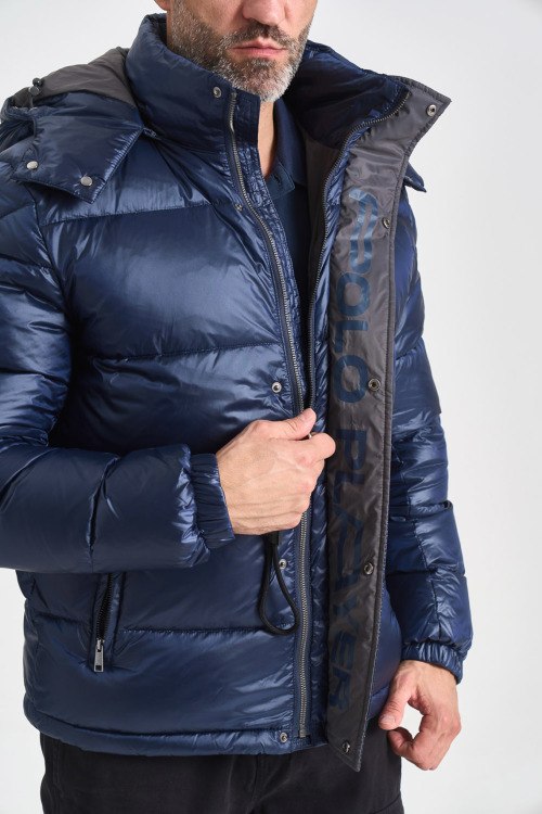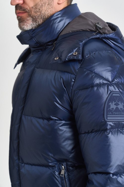Детали: Мужская темно-синяя куртка на пуху от La Martina (Ла Мартина). Стеганый дизайн, съемный капюшон, высокий воротник, нашивка с логотипом на рукаве, боковые карманы на молнии, застежка на молнию и кнопки, манжеты на резинке, классическая длина, наполнитель из микса пуха и пера. Параметры модели: 103 см - 87 см - 99 см. Рост - 182 см. Размер на фото - L