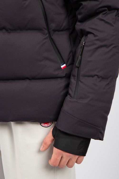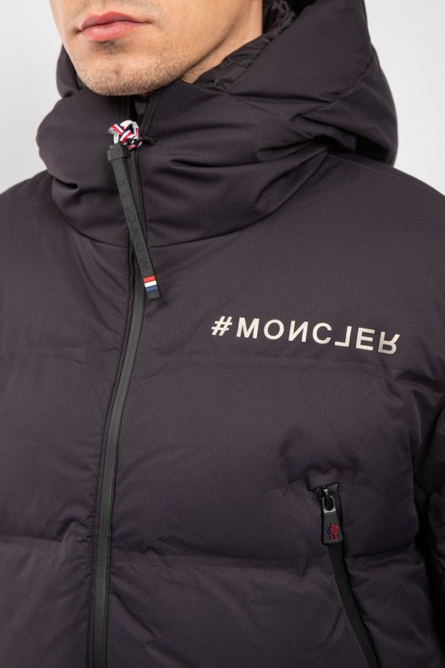 Мужская темно-синяя куртка на пуху с капюшоном Fellberg от Moncler Grenoble (Монклер Гренобль). Стеганый дизайн, высокий воротник, вшитый капюшон, логотип на груди, боковые карманы на молнии, карман на рукаве на молнии, застежка-молния, эластичные манжеты, классическая длина, наполнитель из микса пуха и пера. Комплектация: фирменный кофр, коробка, пакет.