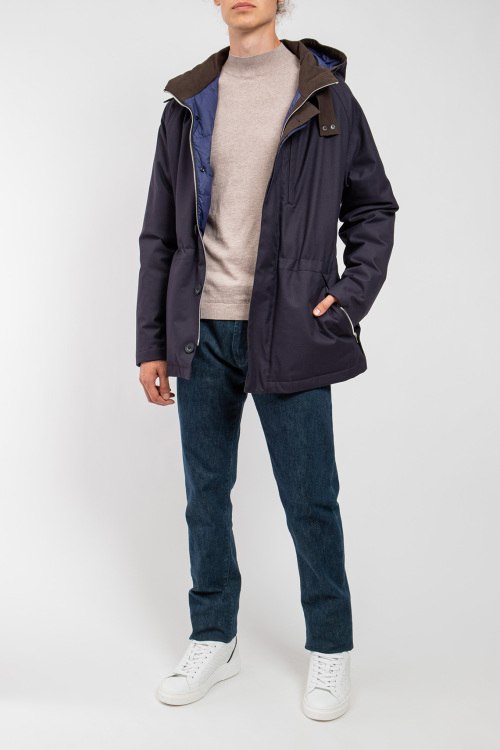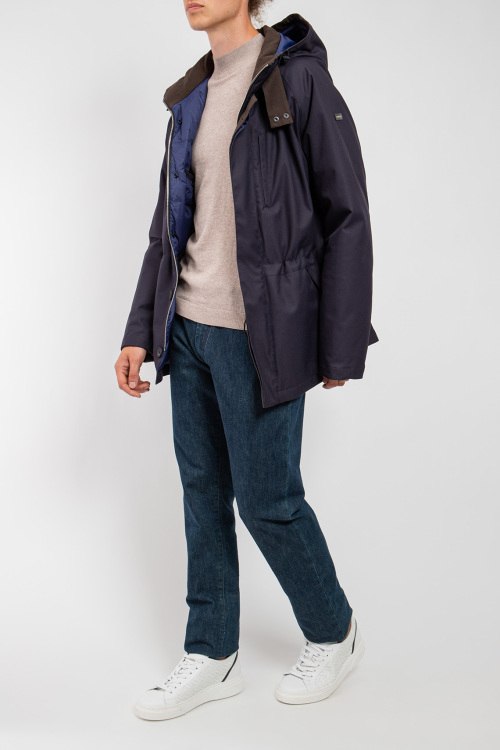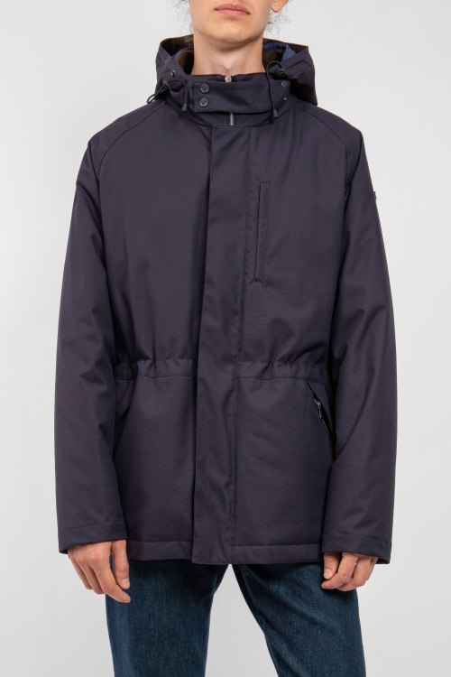 Мужская темно-синяя куртка на пуху от Samas (Самас). Вшитый капюшон, высокий воротник, три передних кармана на молнии, один внутренний карман, застежка на молнию и кнопки, в талии на кулиске, наполнитель из микса пуха и пера. Параметры модели: рост 188, 91-70-92 см. Замеры для размера 56 р: длина изделия - 80 см; ширина по груди - 65 см; ширина по талии - 61 см; длина рукава по внутреннему шву - 54 см / от плеча - реглан.